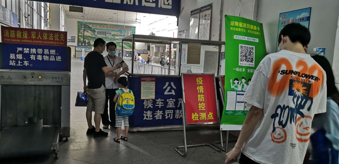 是七月上旬,位于紅旗廣場(chǎng)的湘運(yùn)中心汽車站似乎還沒有恢復(fù)元?dú)猓词怪苣,乘客也是寥寥無幾,唯有候車室的大屏幕播放著疫情防控的宣傳。